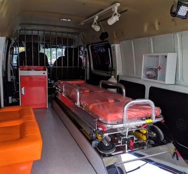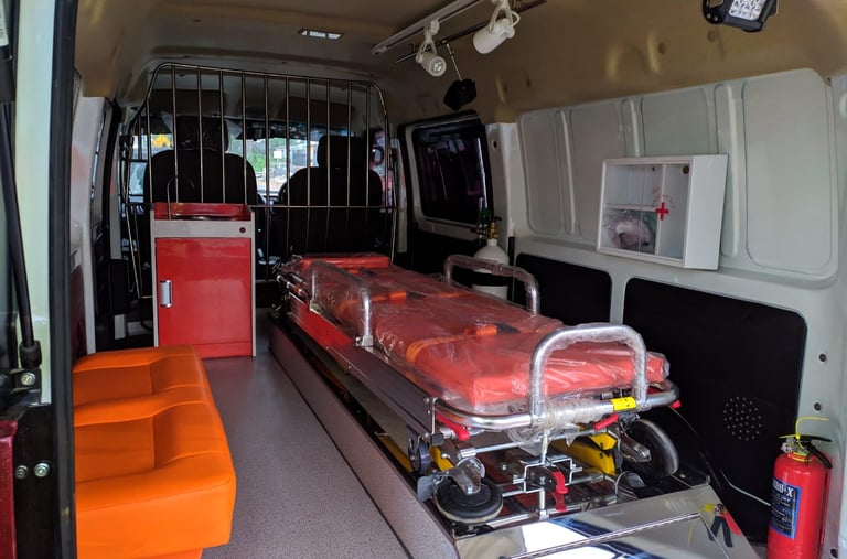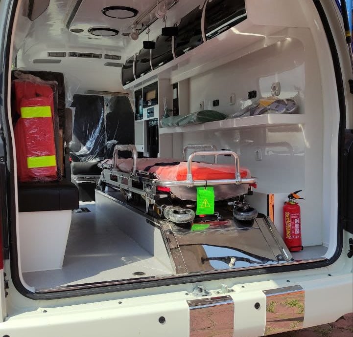Mobil ambulance dengan desain mewah dan fungsionalitas tinggi.